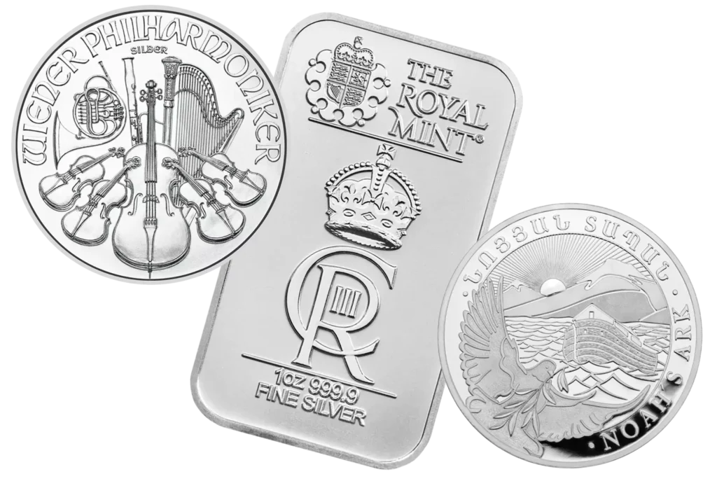 Contrairement aux lingots d’argent, les pièces ont une valeur nominale dans leur pays d’origine. Ils sont frappés dans les monnaies gouvernementales et ont cours légal. De plus, ces instruments bénéficient généralement des primes les plus élevées parmi tous les produits en argent.